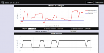 Monitoramento e controle integrados da temperatura interna de um silo de armazenamento de grãos.